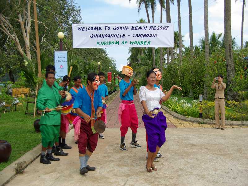 others of note are Ochheuteal, Serendipity, and Otres. Here at Sokha we were welcomed by a band and dancer