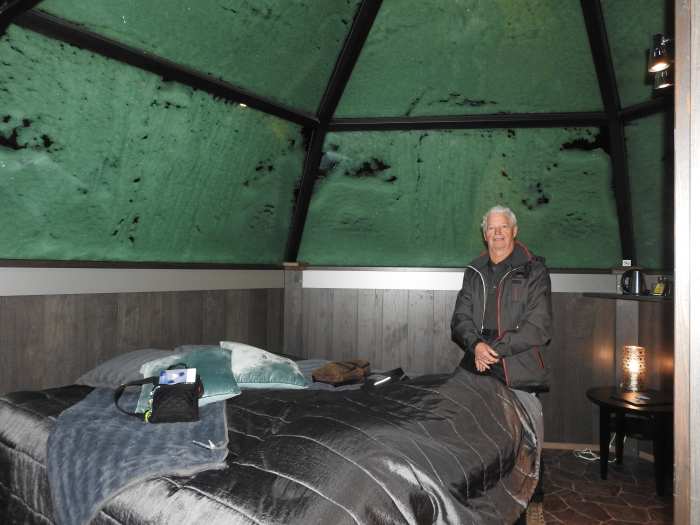 Hotel in a glass Igloo. What an experience this will be and from what we read it will be a highlight of the trip. We were not let down as on approach