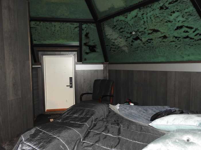 igloo roofs so one could look out and see the view of the many tress that surround the hotel. The igloo itself was so very comfortable, plenty big