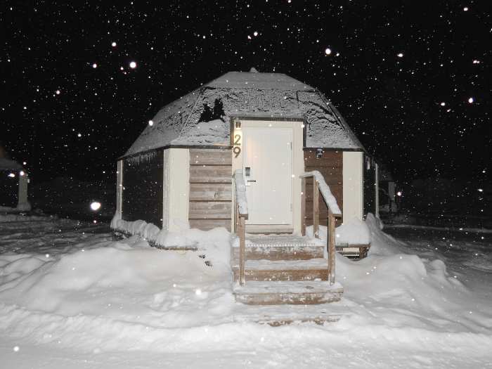 that we could put on if the Northern Lights appeared so we could see them from our bed. However, that was not to be as it was snowing quite heavily and we