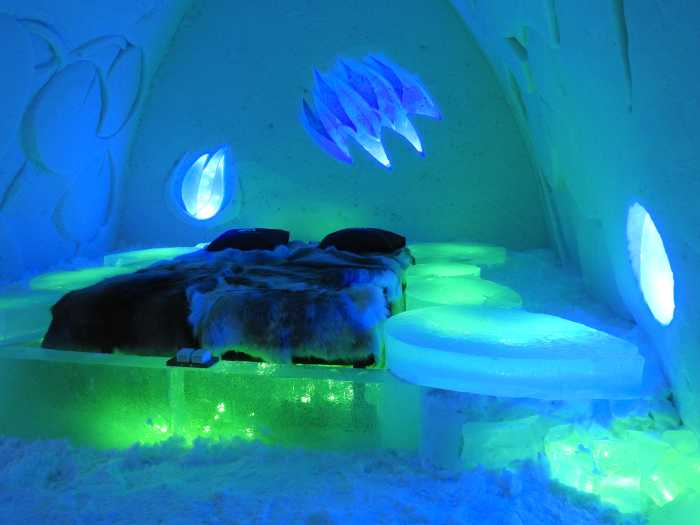 something else. The walls, floor and ceiling of course are all ice and the hotel has all the facilities of an ordinary hotel. A restaurant, where people