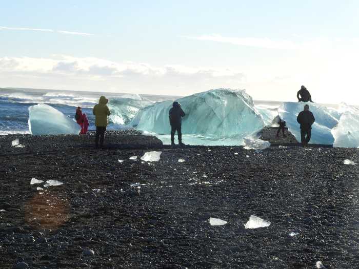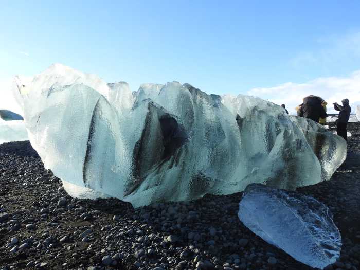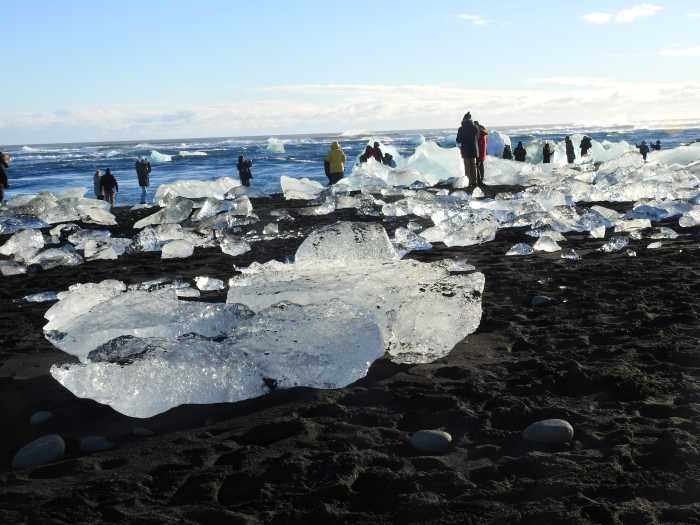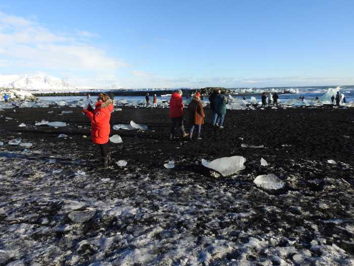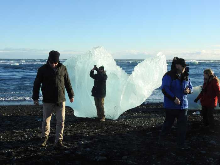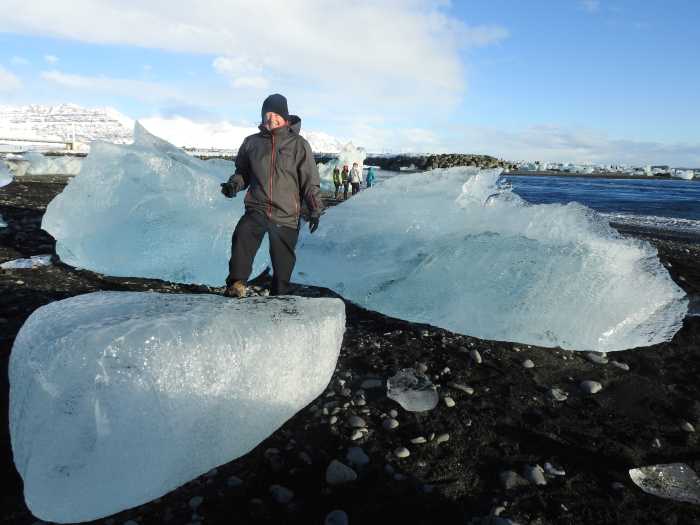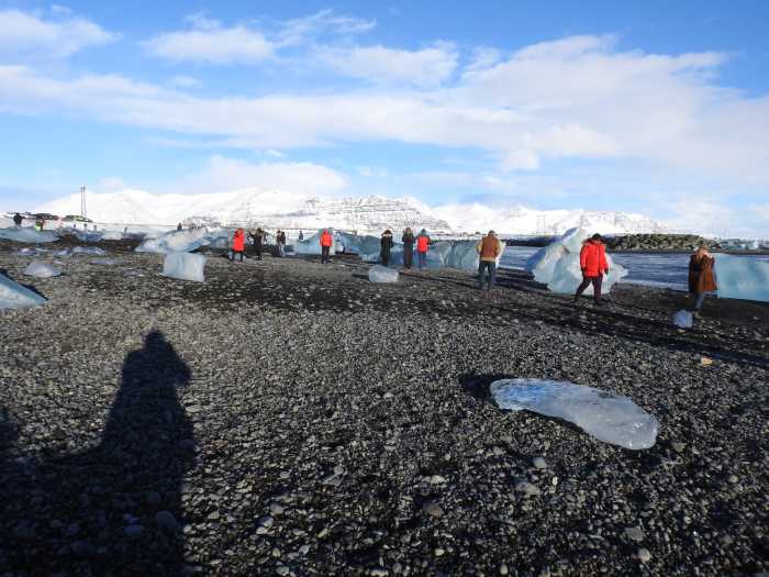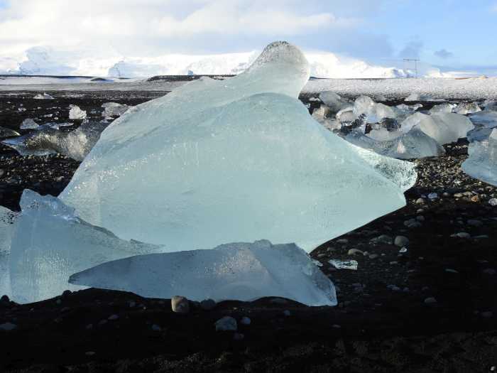 Off we go again and todays journey takes us to Diamond Beach, where the icebergs that are washed up by the waves shine like diamonds! They are many and varied shapes and its fun to work out what they look like, some fish, some whales and others just sparkling bits of glass..one doesn’t know where to look and the black sand certainly shows these fabulous lumps of ice to their very best. Many colours seem to show in the different light and that brings another dimension to the whole scene. After much running around them and photographing them, its time to move over to the lagoon across the way.