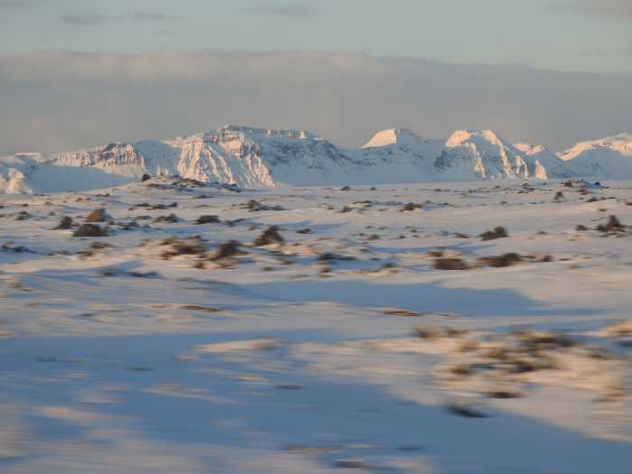 As we travelled along the roads, which were very good, by the way, there was a different kind of mountainous outlook. The rocks, or Lava were quite scantily covered in parts and gave a different look to the smooth, snowy scenes we had been seeing. Just spectacular.