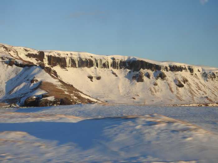 Today’s adventure is to drive the South Shore and see the beautiful scenery that Iceland has to offer and in the winter it really shows off. We stopped first at the Icewear Magasin shop where lots of Icelandic gifts and wear can be bought. There was material being woven here and lots of souvenirs and goods to browse. After our lovely visit it was time to back on the coach for a fantastic sightseeing drive that certainly didn’t disappoint. Lots of mountains, craters, rivers and everywhere one looked there was a sight to see.