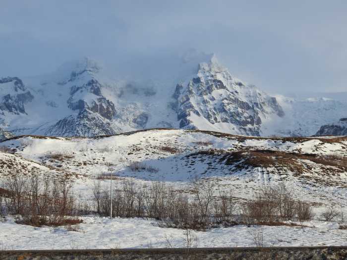 Another change in the terrain and the mountains at times looked like they were just marshmallows!!! Not so though if you were out there climbing them…. Our weather was just right, cold but we were dressed for that and very little or no wind most of the time. March was such a great time to go as we certainly had the best of it all.