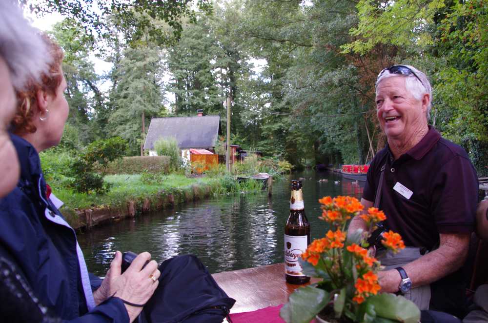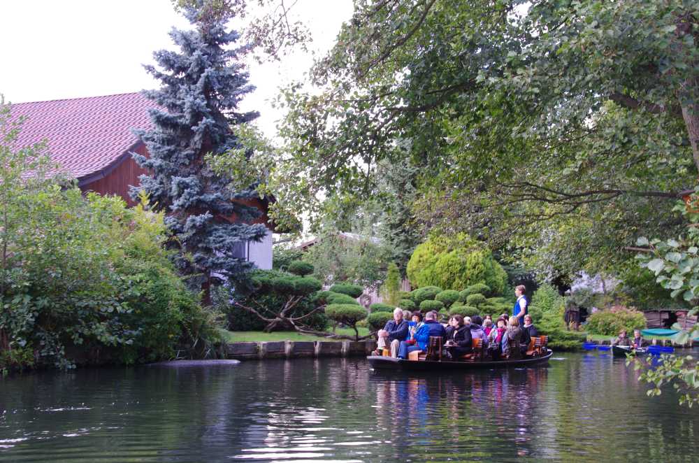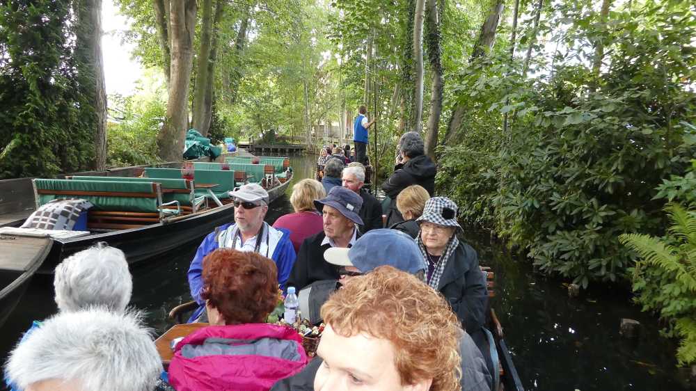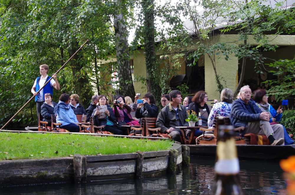 This morning we boarded our Travelmarvel coach, met our driver and off we went to Spreewald, Germany. A lovely drive through some green countryside and in a couple of hours reached Spreewald. This was a smallish town with lovely homes scattered about and we parked the coach near the river Spree. Then it was time to board small boats on a narrow river and much to our surprise found a young lady who would pole us along the water. We had beer offered and were very comfortable sitting there and taking in the meadows and forests that passed us by. This area was deemed a protected area by UNESCO in 1991 and around 50,000 people reside here. It is famous for the many small rivers and waterways that exist in this area. Tourism is probably the most mainstay of the area and all in all was a fabulous sail in a very peaceful and picturesque area.