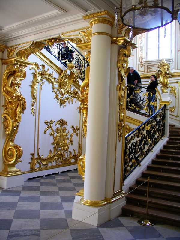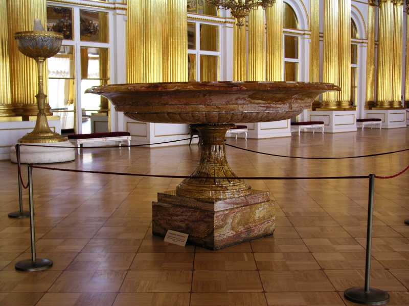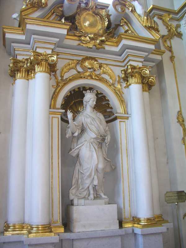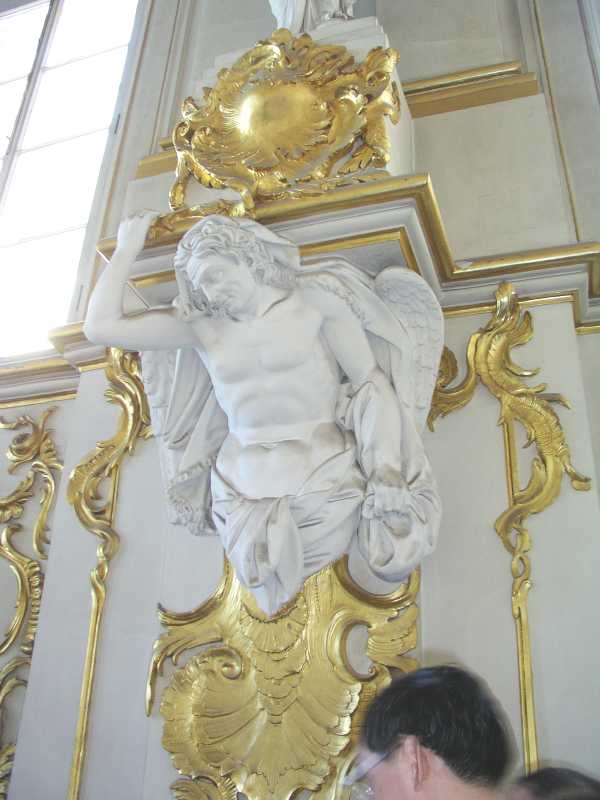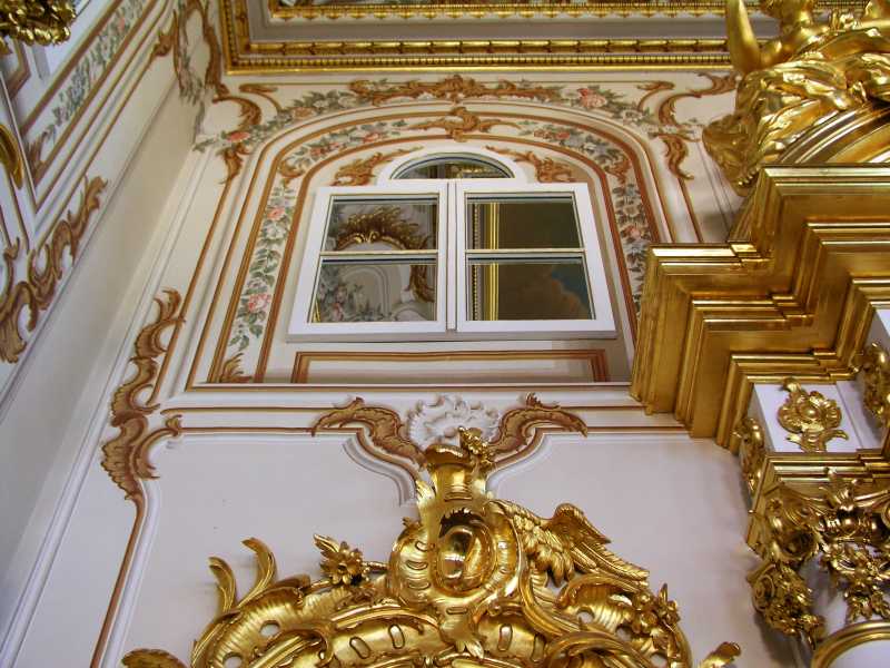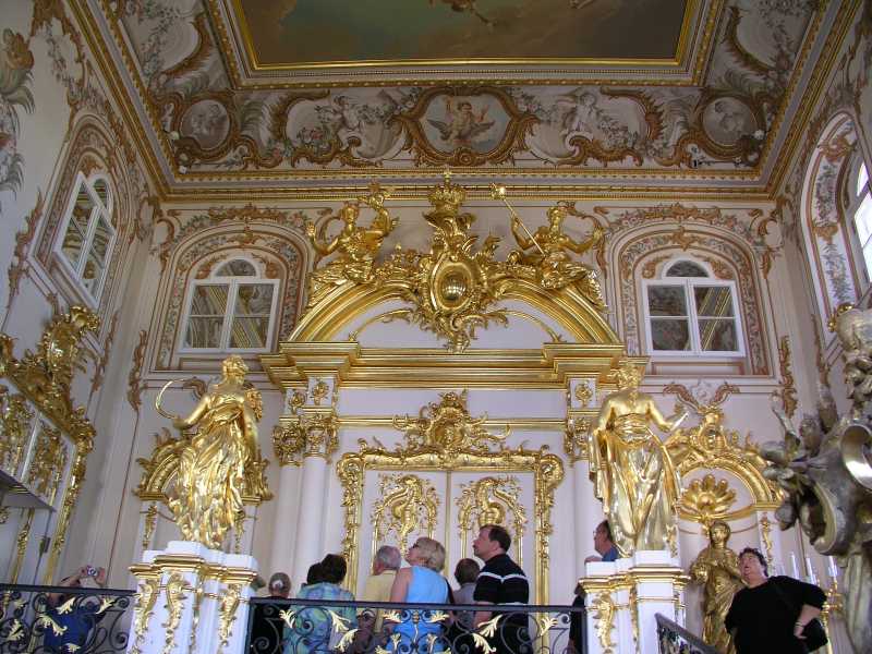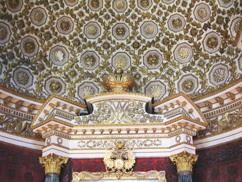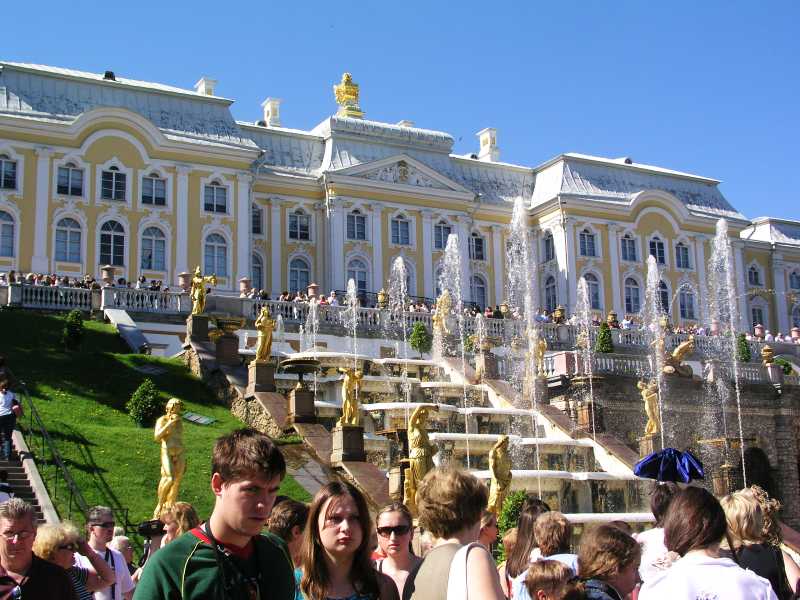 On arrival in St Petersburg, we were met at the dock by Olga from Denrus Tours. We were having 2 full days with her as our guide and looking forward to that. We left the dock in a large van and were introduced to our driver who drove us quickly through the city. We were lucky as it was a Sunday morning and to make it even better the sun was out and the day was very pleasant. Our first destination was to Peterhof and it took about an hour. On the way we got to see the city and environs to get a feel for the place. Olga gave us lots of detail and sparked our interest in all things for the day. Peterhof is a world famous palace, park and fountains that delight all who see them. We first toured the palace which was constructed in the early eighteenth century by Emperor Peter the Great. In 1917 the palace, park and fountains were taken by the State and used as an architecture and art museum. The rooms are awesome, with gold inlays, magnificent paintings and ornate ceilings and much more.