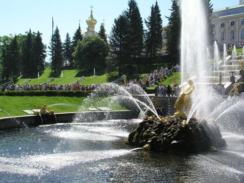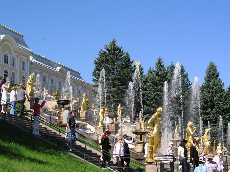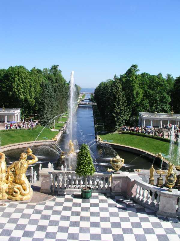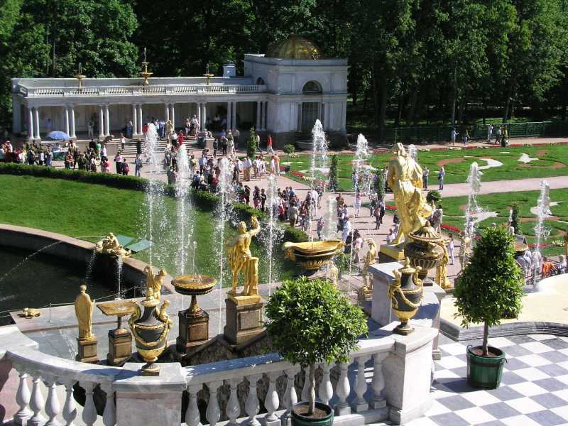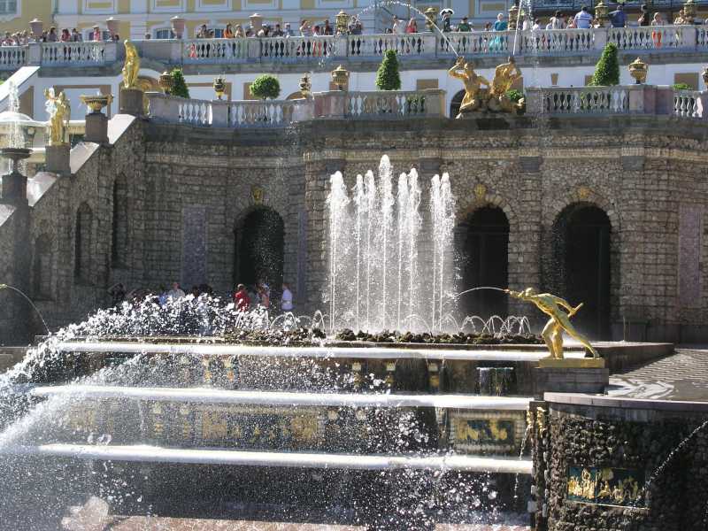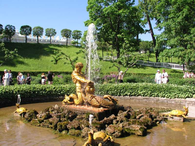 There are 176 fountains here in the Upper and Lower Garden areas, and all are worked by water pressure with no pumps at all. Four magnificent cascades are a feature of the gardens and credit must be given to the many architects, craftsmen, artists and others who worked on the historical ensemble over the years. Part of the magnificence is the gilded statues that are integral to the fountains and much delight as well as history is shown in these works.