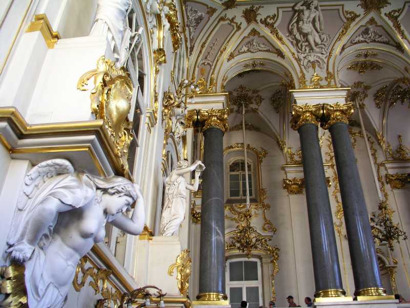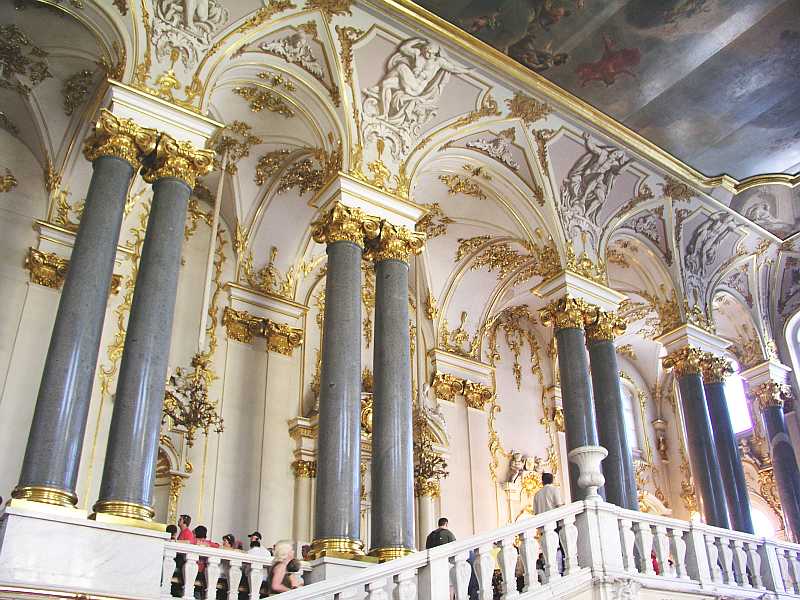 Well, The Hermitage is something else! It is said that the only museum in the world to rival it in size and quality is The Louvre in Paris. Olga tells us that if you looked at every item in The Hermitage for a few seconds - it would take eight years to see it all. There are about three million items on display including collections of Italian Renaissance, French Impressionist paintings as well as works by Rembrandt, Picasso and Matisse. The furnishings of the period are on show in all the rooms and gilt decorations cover wall, staircases and pieces of furniture.
