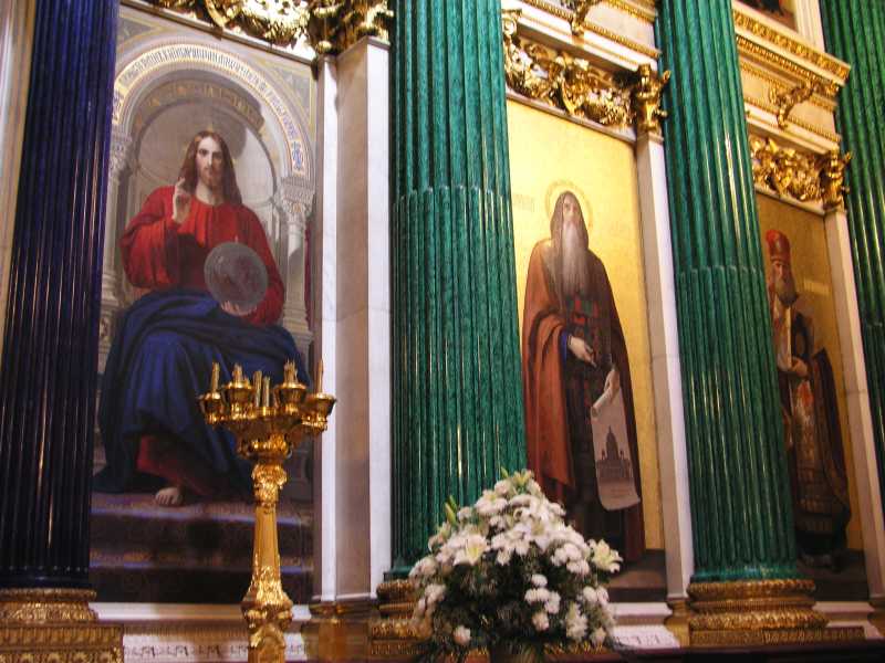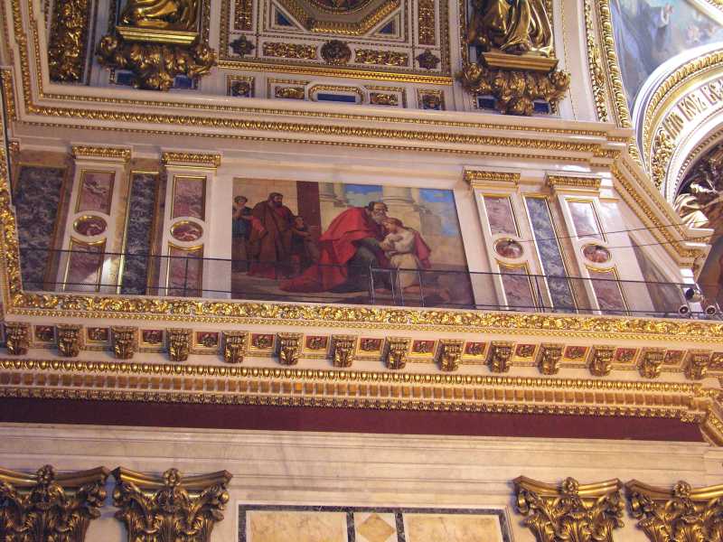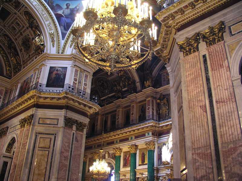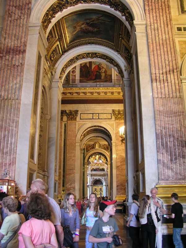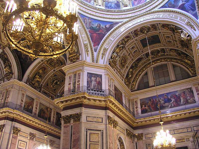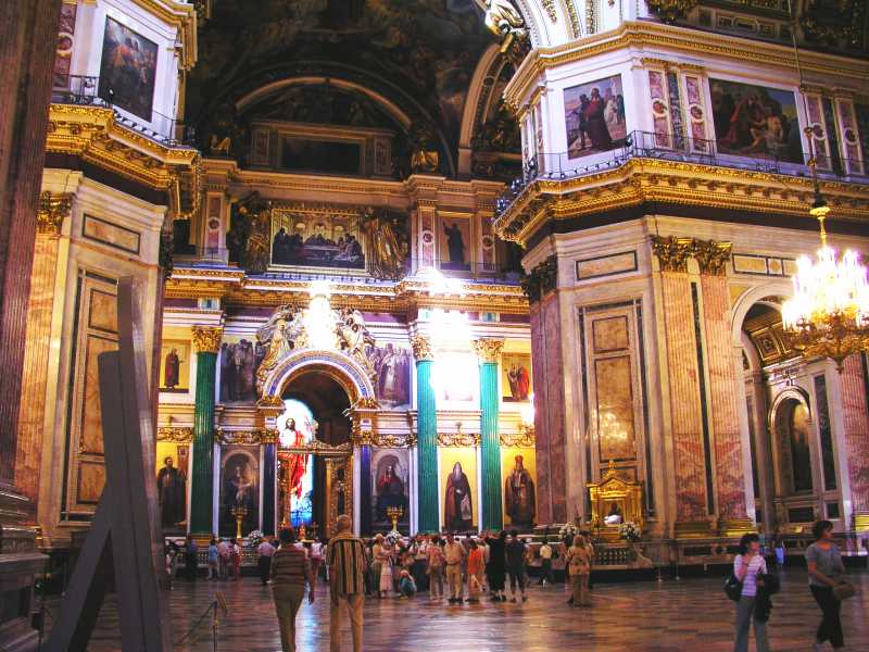 Next on our tour was St. Issac's Cathedral which sports a gilded dome some 100 mtrs into the air. It is covered with 100kgs of pure gold and dominates the skyline of St. Petersburg. August Monferrand designed this structure in 1818 for Alexander 1, but it was not complete until 1858. The interior consists of many kinds of stone and marble along with mosaics, frescoes and other decorations. It certainly is a sight to see and the sheer size of the building is incredible. After a wonderful visit Olga left us about 5.30 and was looking forward to seeing us the next day.