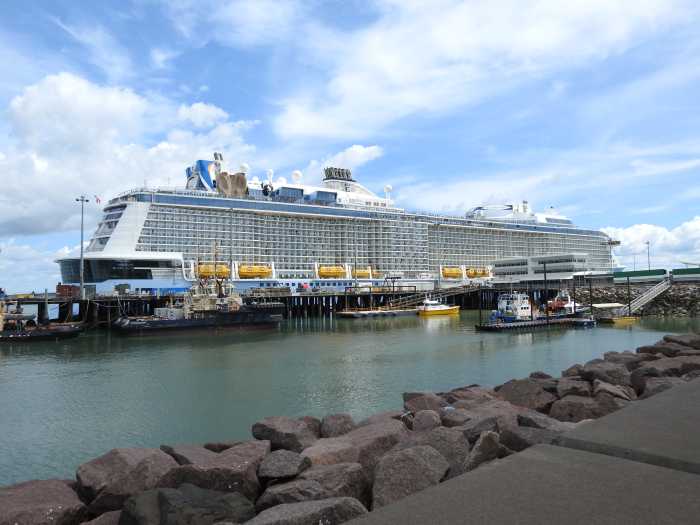 Today is the start of our 14 Night Reefs and Jungle Cruise on Ovation of the Seas. Our first view of the ship from the Railway Station