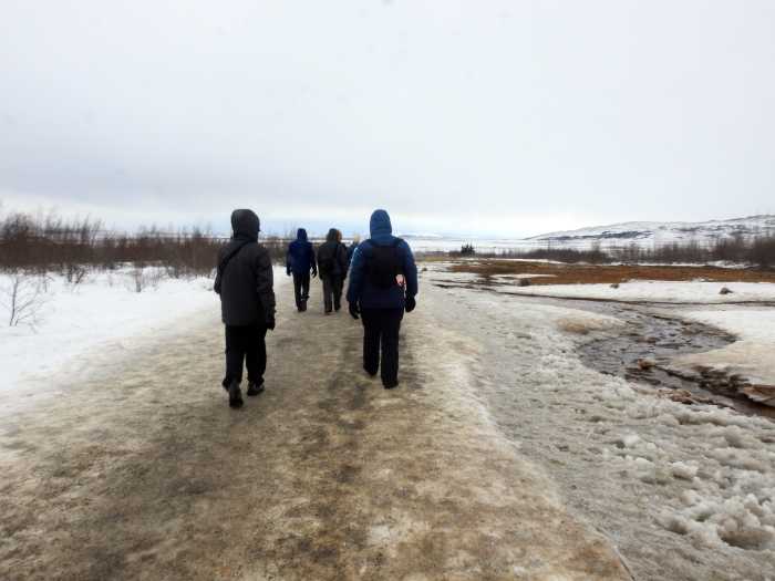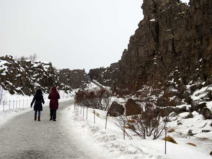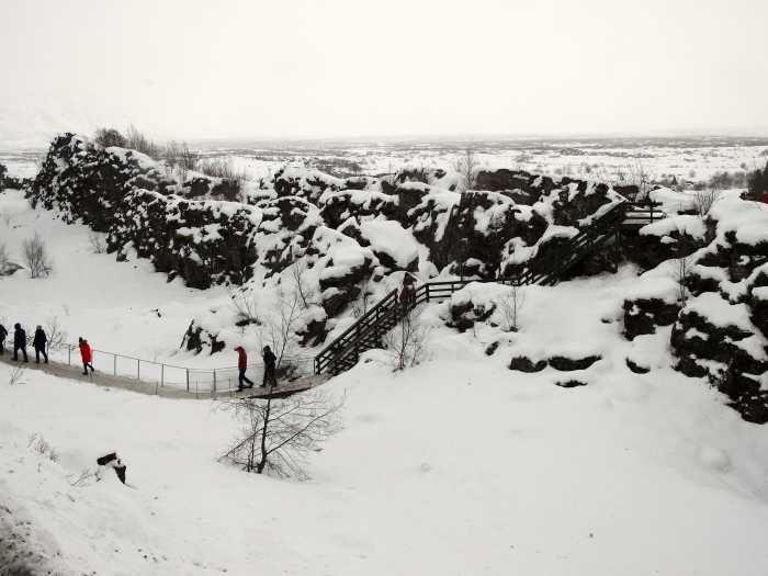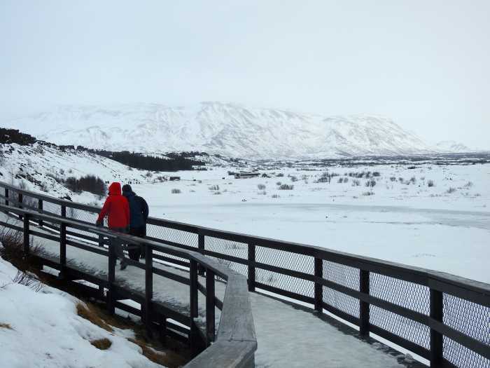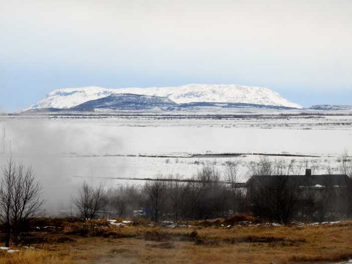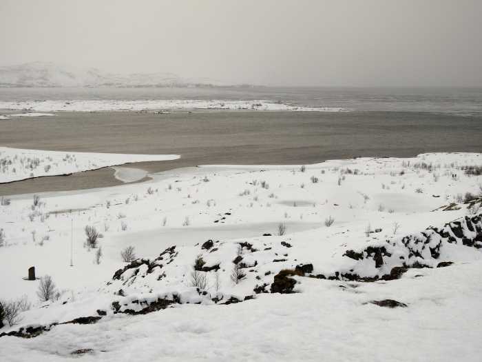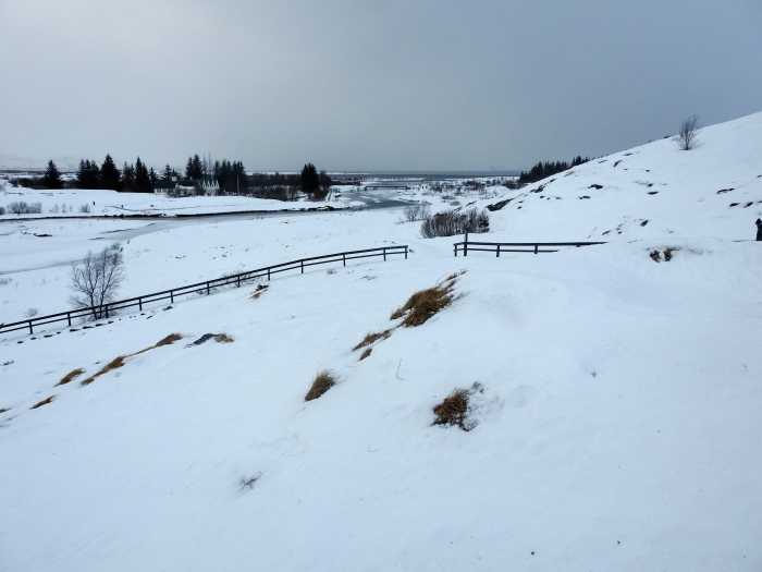 We then had a very picturesque drive towards Thingvellir with snow and ice all around. The road was very good, our driver excellent and we saw lots of lovely homes and farms scattered about the countryside. Icelandic horses popped up occasionally and every second there was something to see. Loved the brightly coloured roofs on the buildings