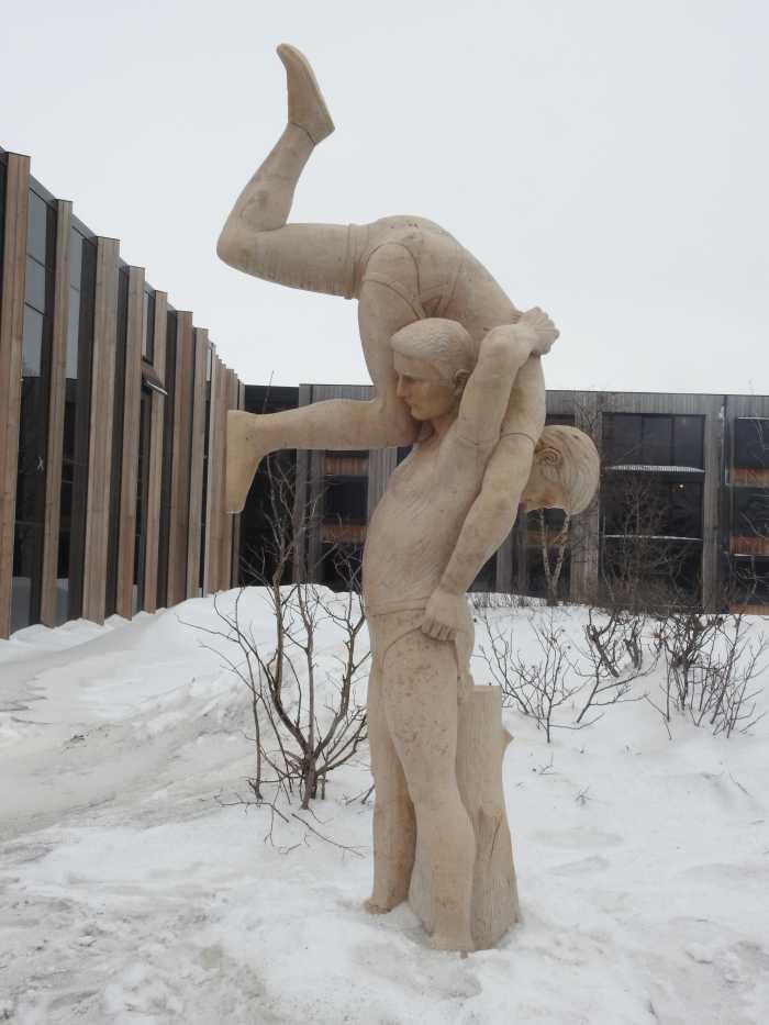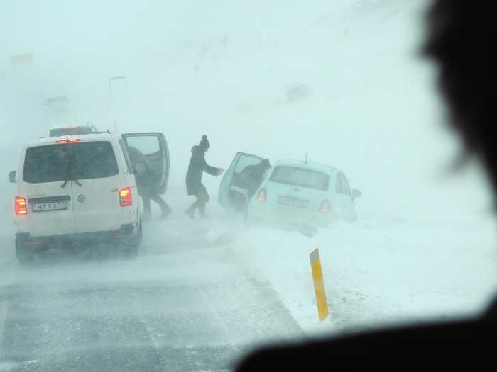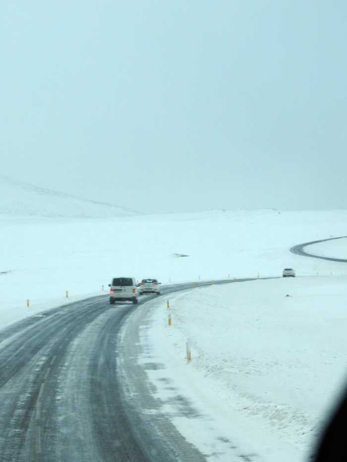 Unfortunately time to get back on the coach and here we had a very exciting drive as a severe wind came up and our coach almost blew off the road. Thanks to our wonderful driver we were ok but a small vehicle in front of us was not so lucky. The wind pushed them off the road and into the snow. Not hurt, just another winter adventure. Then we continued to travel and observe the wonderful countryside and trees and rivers as we passed.