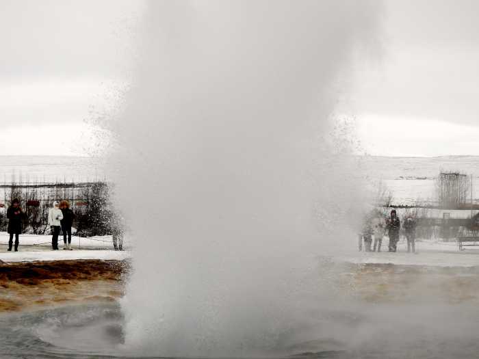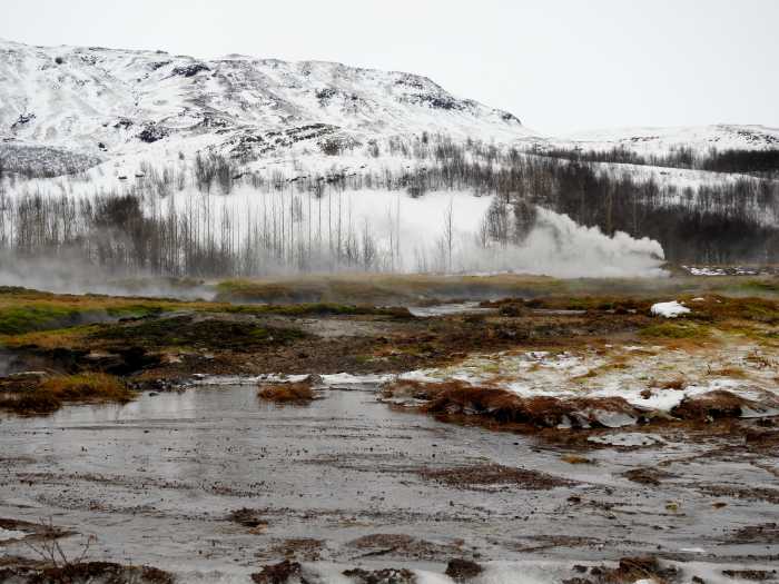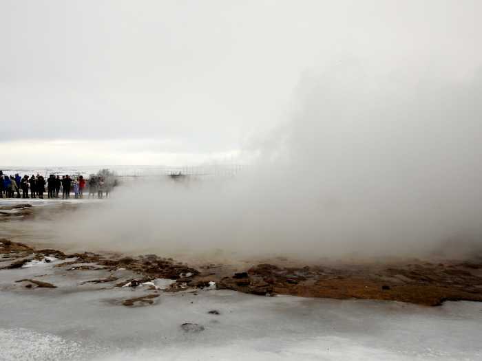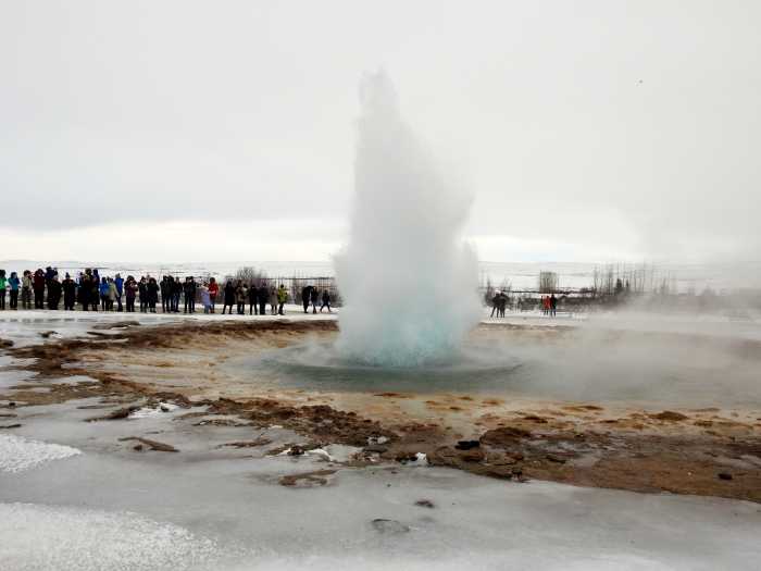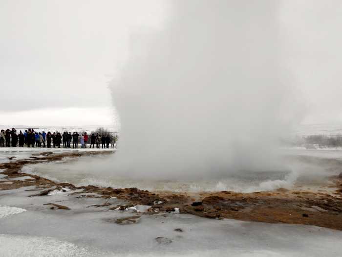 Next stop was to see the amazing geothermal area of Geysir. The thermal heat pools were spreading steam out constantly and the Stroker hot spring area was so large with the bubbling mud pools and the erupting geyser going off at regular intervals. The water plume was so high and so very spectacular that many of us jumped each time it blew. What an amazing place and so we had to stop at the restaurant area across the road and sit with our coffee and food to take in the amazing sights just across the road form us. It was a wow day!