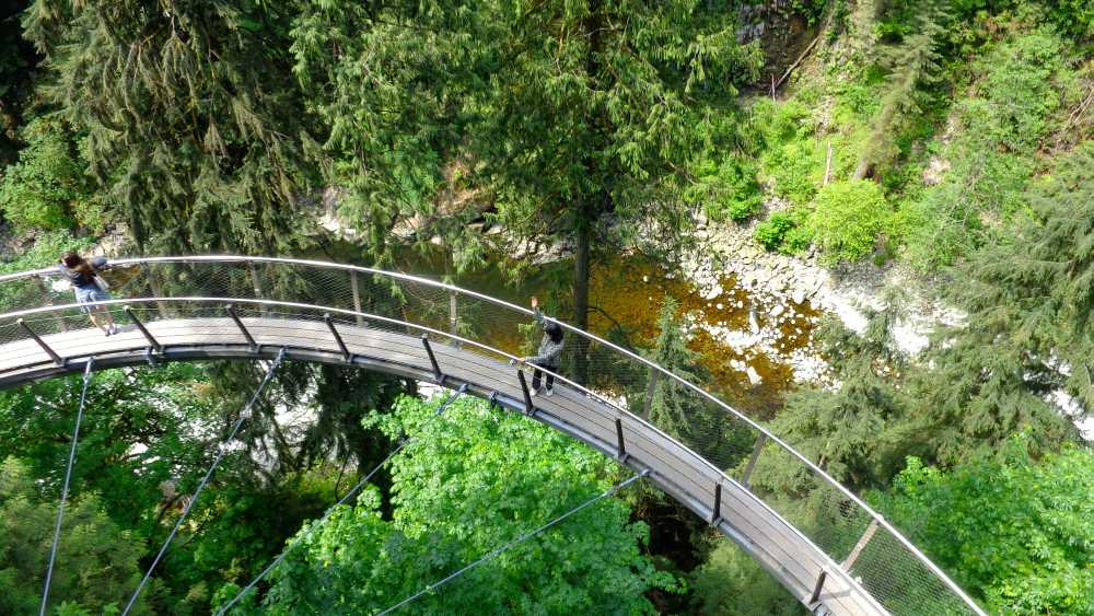 walkways hang high above the Capilano River and are hinged to the granite cliff face. What a feat and brilliant views as well as excitement for