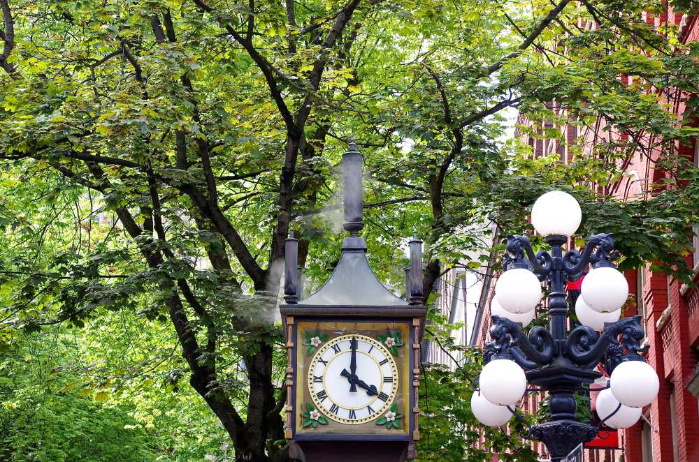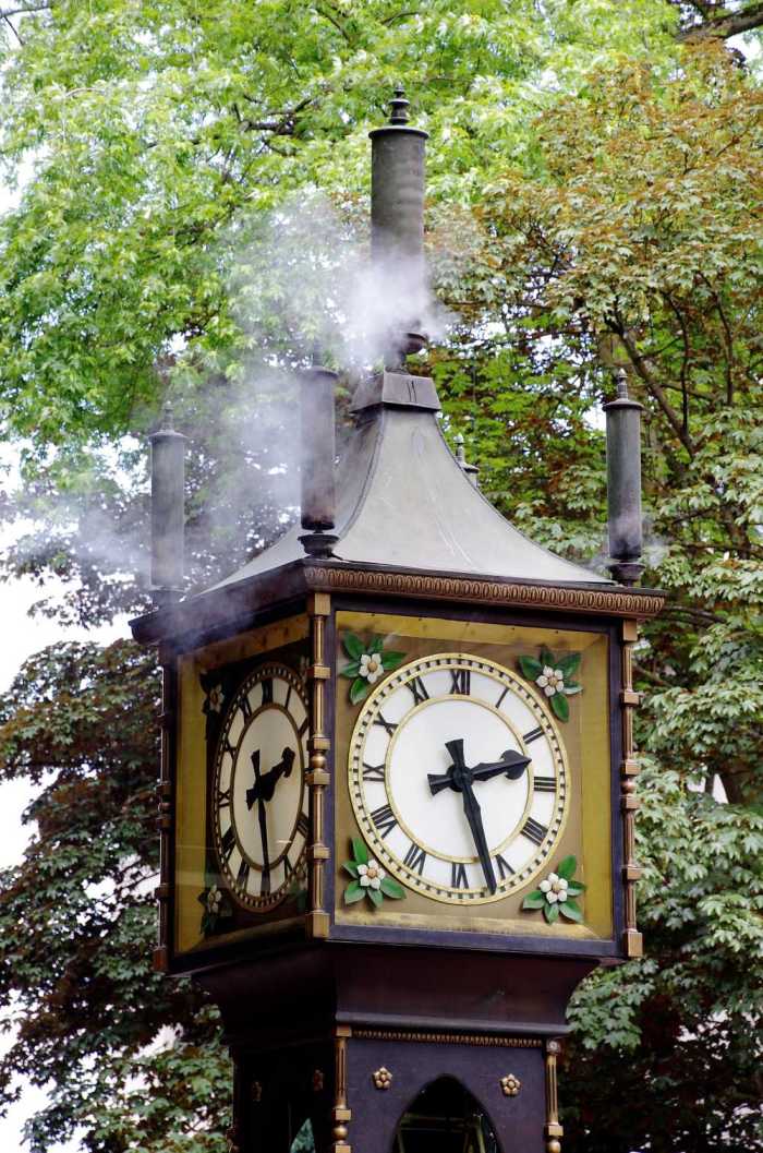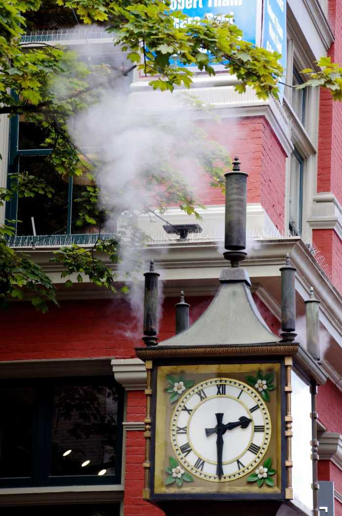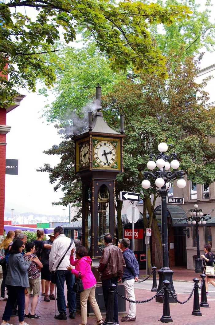 the Gas Town Steam Clock. It was dedicated on 24th September 1977 and is very much a part of Vancouver culture. It weighs 2 ton and blows steam every quarter hour