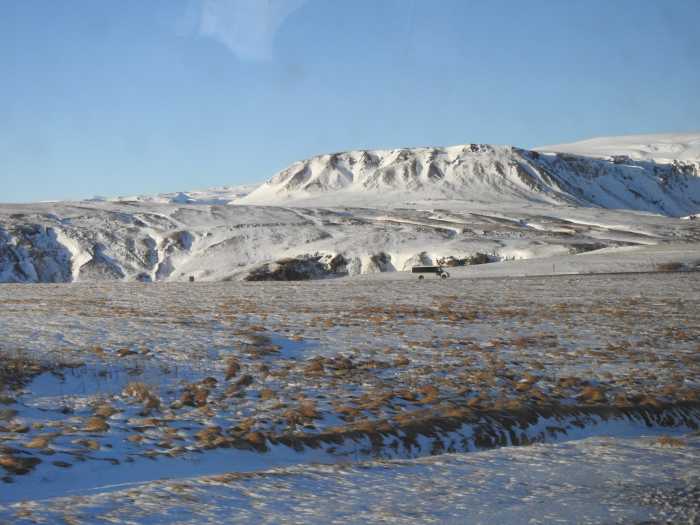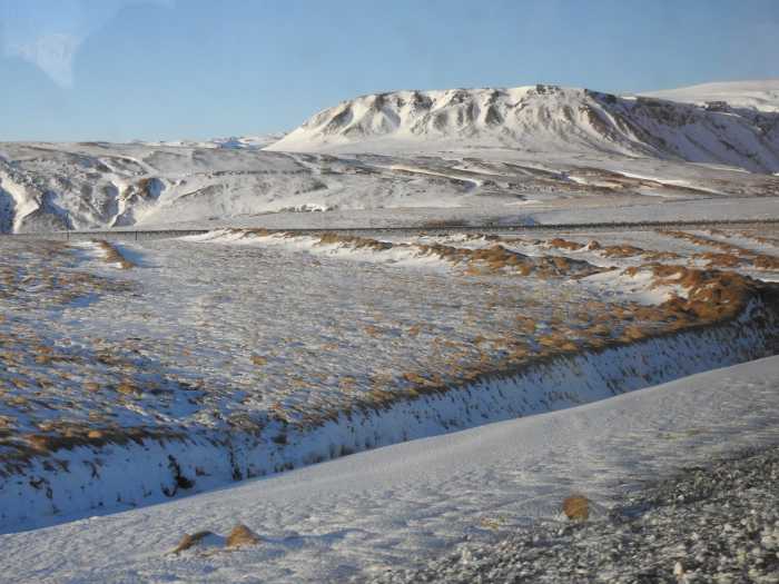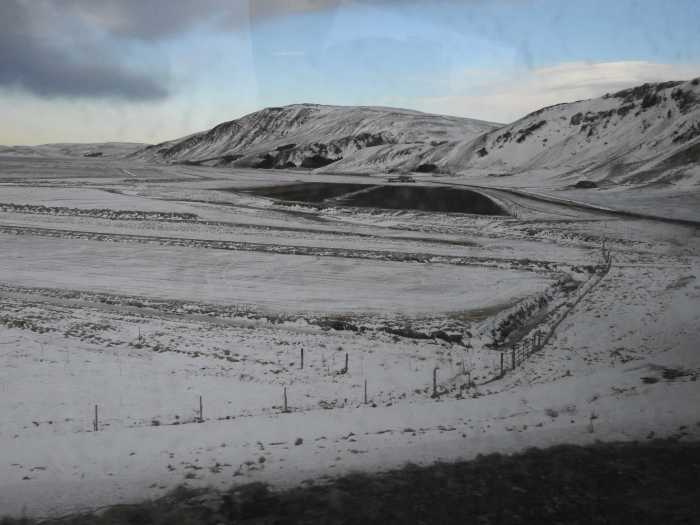 The Lava areas of Iceland are so spectacular and looking out our coach showed the roughness of the terrain but the absolute beauty of snow covered grounds either side of the road. Fencing was scattered about and it must be needed in the summer months for the farmers to control their stock. There was even a wedding on one of the mountain tops and what a great backdrop for that they would have had!