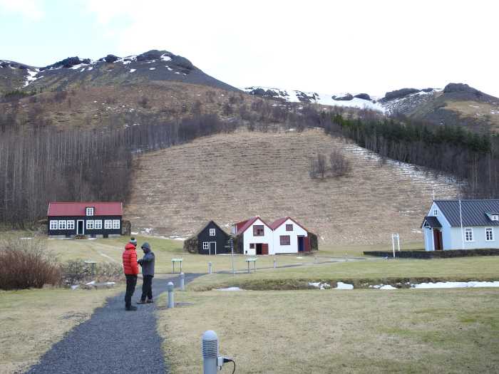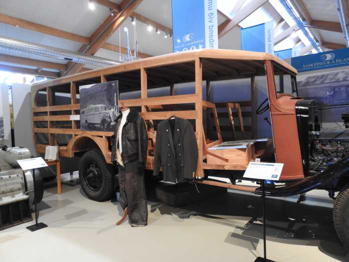 Time to visit the Byggdasfn Folk Museum, The Husasfn Open Air Museum and The Samgongusafn Technical Museum suitably located in one place.. First we went to see the Museum that showcased the history of fishing in these waters and the way that people lived in those times. Many artefacts were on show and boats and equipment the sailors used was very interesting. Clothes, goods and even an ancient Bible were part of the exhibition. Then it was time to walk around outside and look at the style of homes that people inhabited in those days. Very small, lots of small appropriate furniture and even a sewing machine. A Church was included and there were even small Troll houses on the hill. Then a wander into the Automotive Museum that held so many cars and trucks and snow equipment that it was amazing. They were all in such great condition and even examples of power line operators as well as wireless operations can be found here. A very complete historical collection and a really informative visit.