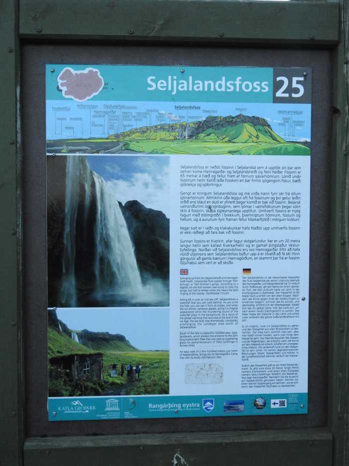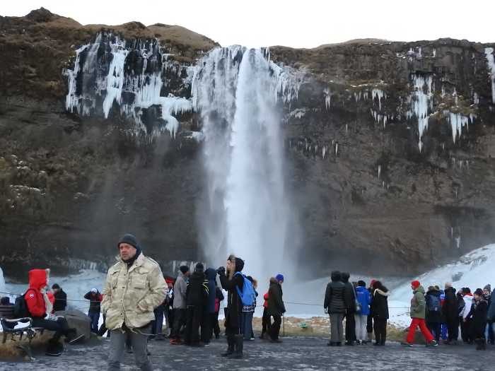 Another treat in store as we stopped to see the famous Seljalandsfoss Waterfall. Again, very spectacular and in summer or weather appropriate you can walk behind this one but you will still need a raincoat for the spray. Fabulous viewing!!