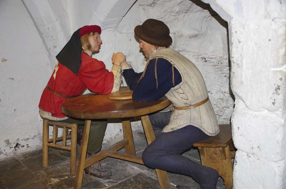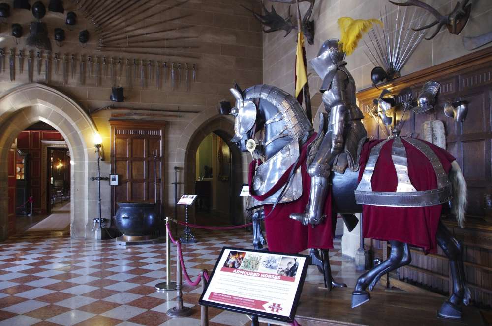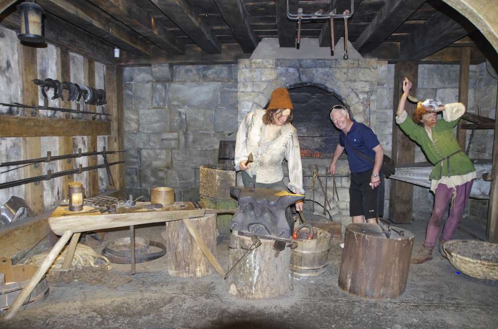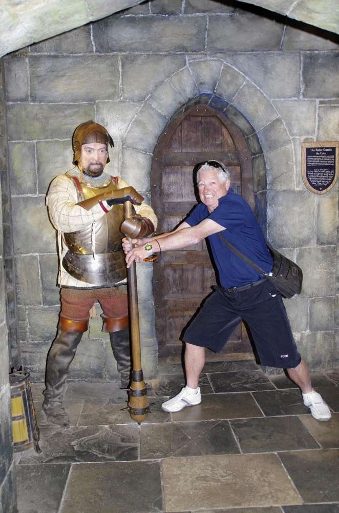 A visit to Warwick Castle this morning and will be in before the generall public so we the whole place to ourselves!. We only had a short drive from our hotel and could see the castle from a distance. When we arrived, our tour Guide Aaron, told us that a family named Greville owned the castle before they sold it to Madame Tussauds who have restored and decorated it for visitors to admire. So much history here The front gate was how they actually protected the castle. If the castle was attacked , gates were lowered, trapping invaders inside and then oils and hot water were poured on them. Very successful way to protect themselves from invaders!. Aaron told us that one of the most important things for a family to have in mediaeval times was the weaponry to show their wealth and power. Warwick Castle was famous for its weaponry and all of the armour was made on site. They even have one small piece of armour for a six-year-old boy who eventually became Prince Charles. On display there are many types of weapons swords, spears with catapults outside in the grounds. The Castle was famous also for the fun and entertainment and sociality side of life in those days. There is even a great big pot that holds 35 gallons of wine back from the 16th century that is still in the great Hall.